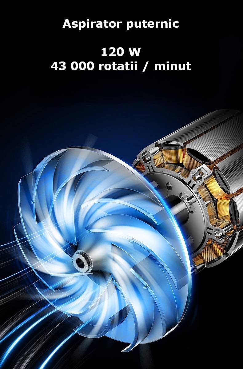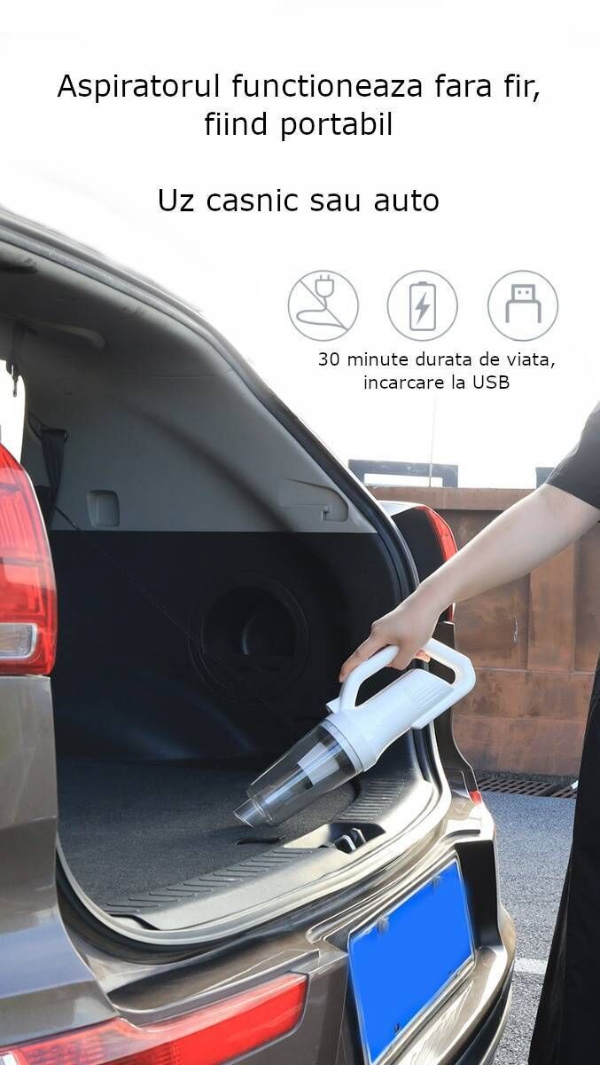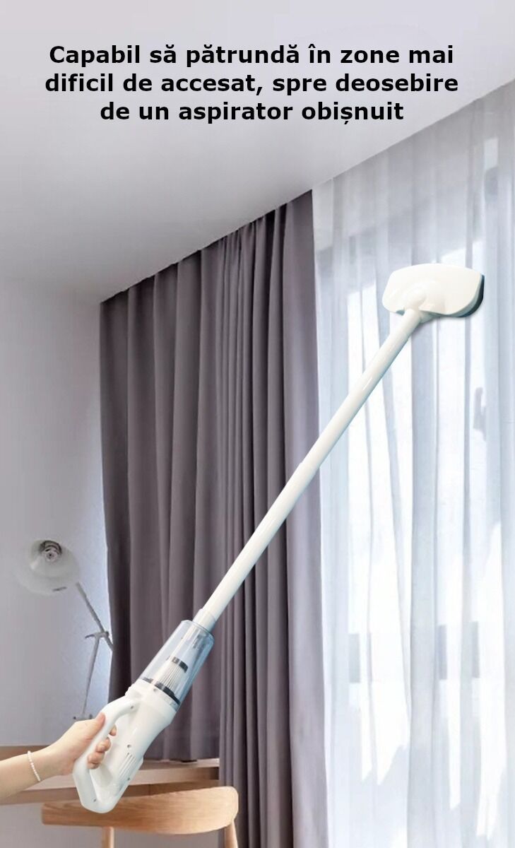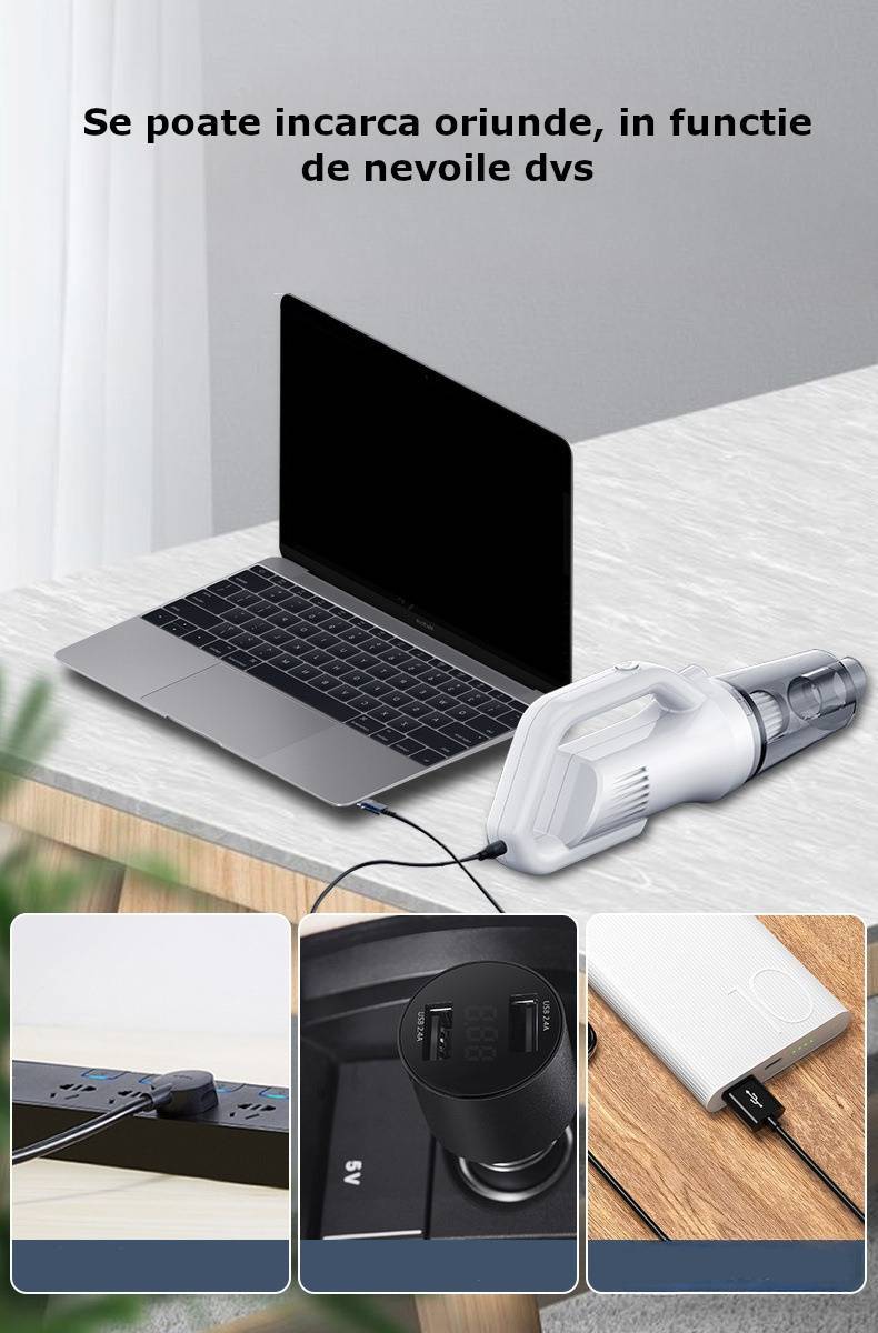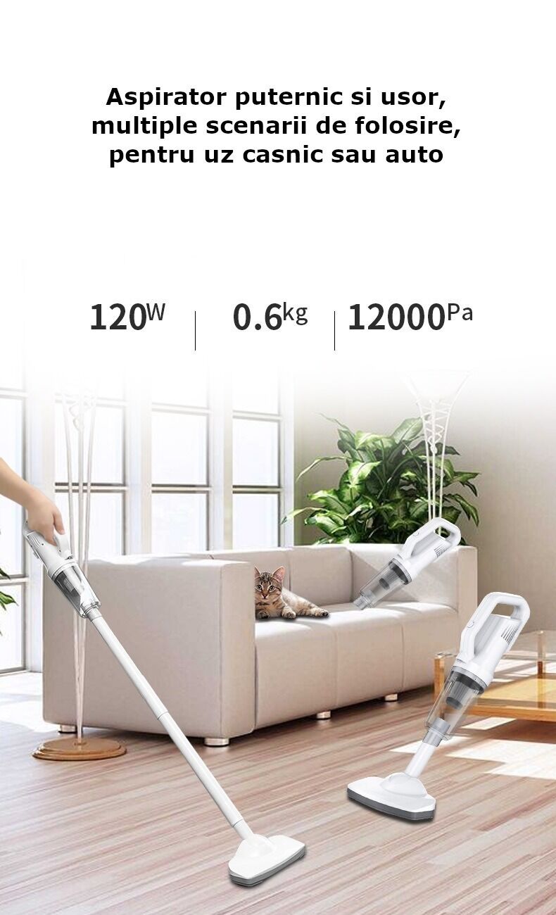 Aspirator de uz casnic sau pentru folosit in masina. Acesta are dimensiuni reduse si poate fi folosit si in cele mai mici spatii cu putinta, datorita accesoriilor care vin impreuna cu produsul