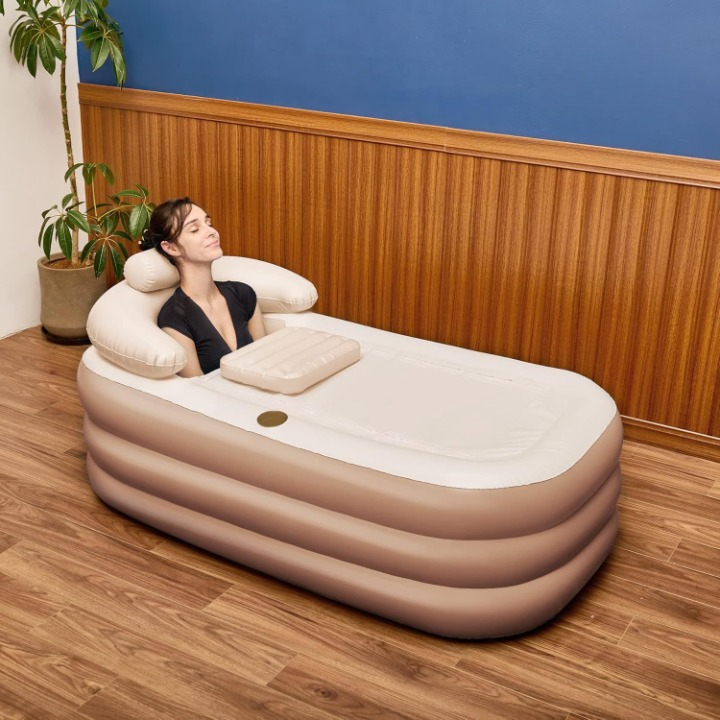 Fabricată din PVC premium, rezistent la uzură și netoxic, cada gonflabilă este durabilă, rezistentă la zgârieturi și ușor de curățat. Materialul moale la atingere oferă confort și siguranță, fiind prietenos cu pielea, inclusiv cea sensibilă a copiilor. De asemenea, este rezistentă la temperaturi ridicate, ceea ce o face ideală pentru băi calde de tip SPA.