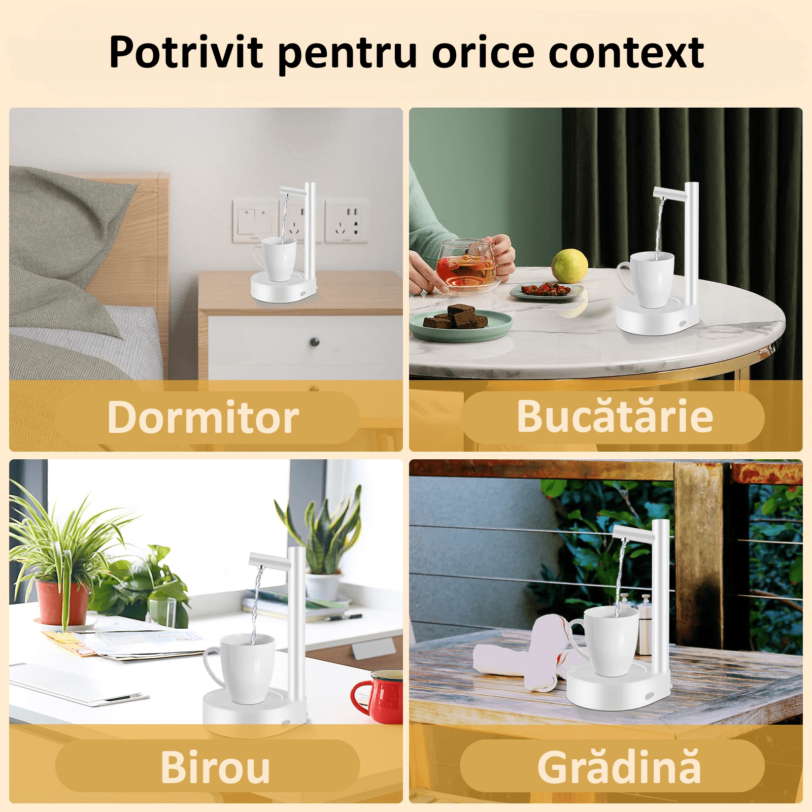 Funcția de incărcare USB adaugă un nivel suplimentar de comoditate, permițandu-ți să iți incarci dozatorul cu ușurință, fără să te complici cu cabluri suplimentare. Cu un acumulator puternic de 1800 mAh, poți avea incredere că vei avea apă disponibilă atunci cand ai nevoie, fără a depinde de prize.