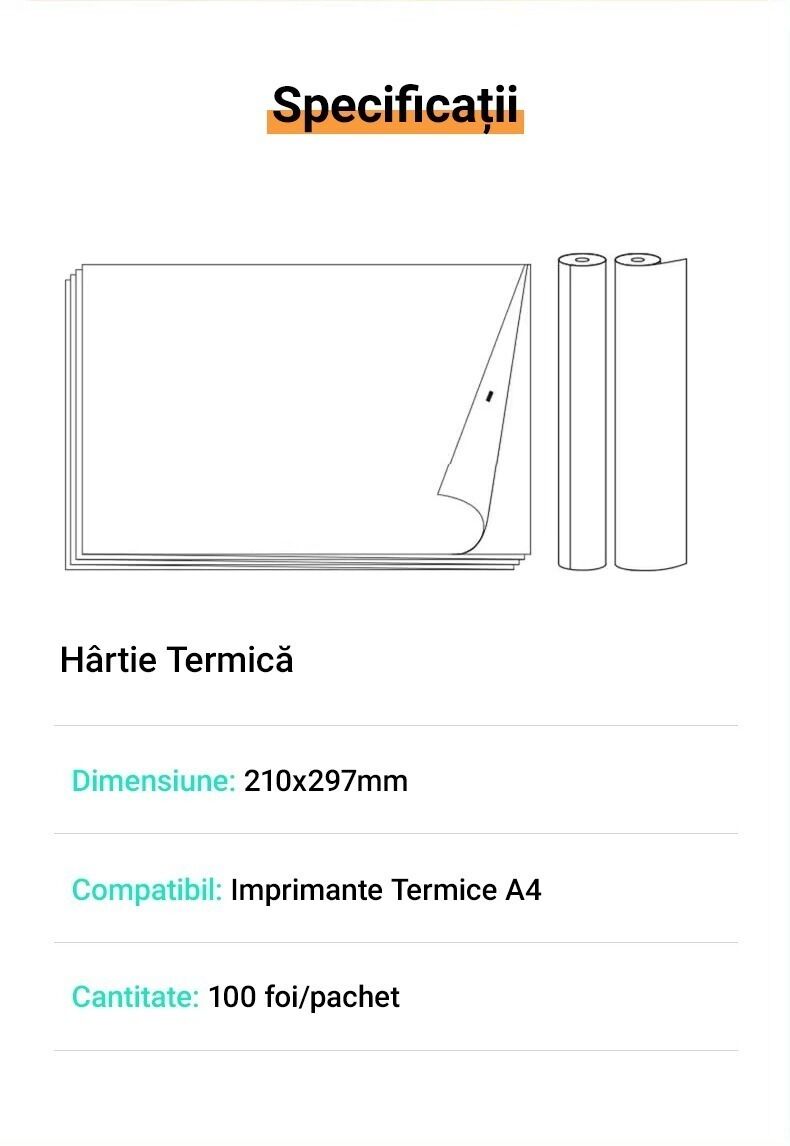 | Tip ambalare | Top hartie termica |