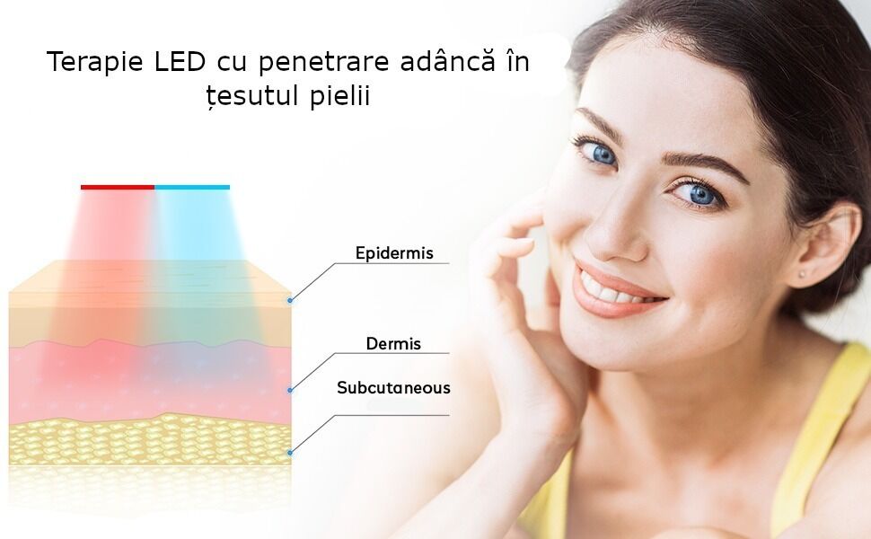 Fototerapie cu lumina LED: Rola este echipată cu tehnologie de fototerapie, care emite lumina LED cu diferite culori, cum ar fi roșu, albastru. Fiecare culoare are proprietăți specifice și poate trata diverse probleme ale pielii, cum ar fi inflamația, bacteriile responsabile de acnee, pigmentarea și stimularea producției de colagen.